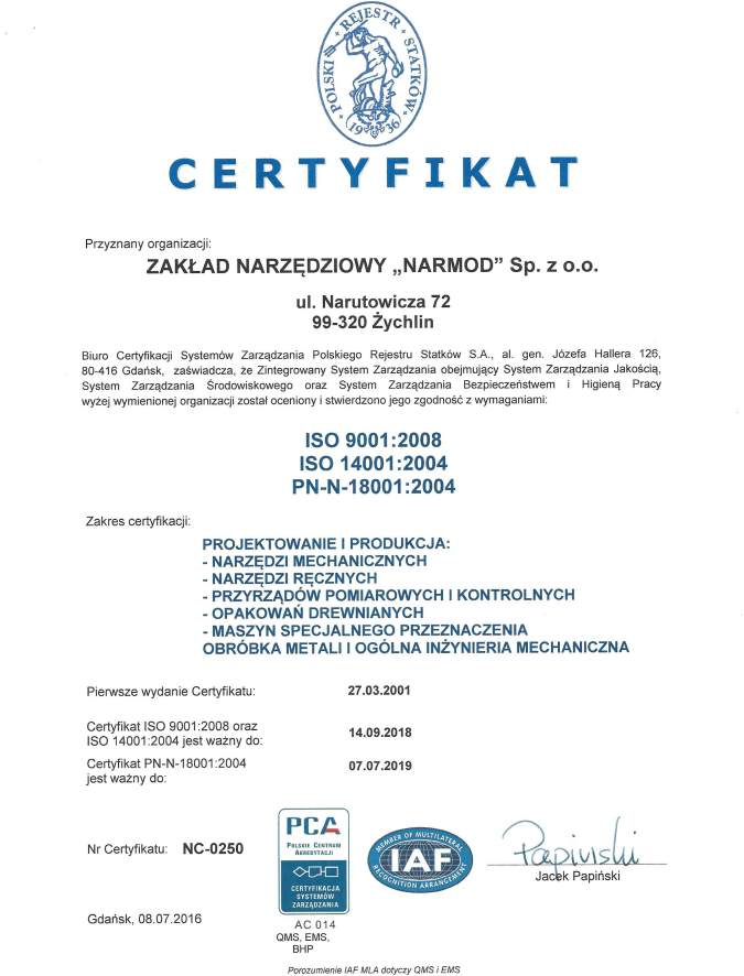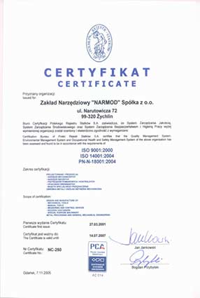 Opis działalności firmy Narmod Zakład narzędziowy Spółka z ograniczoną odpowiedzialnością w Żychlin