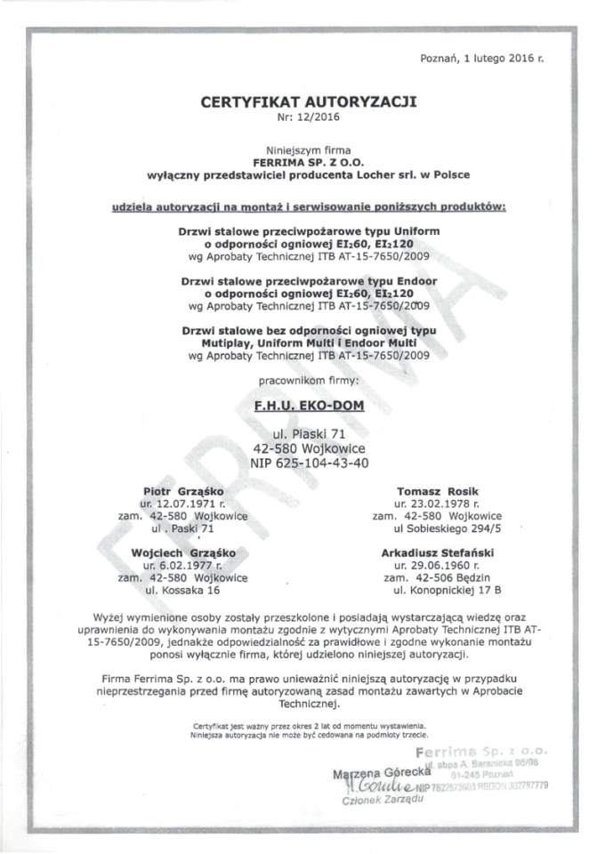 Opis działalności firmy Eko-Dom FHU Piotr Grząśko w Wojkowice