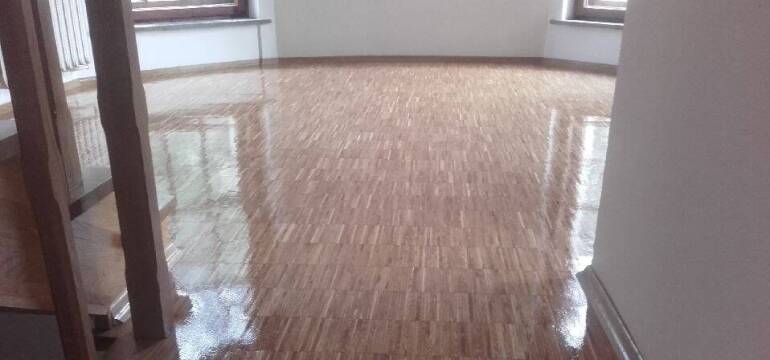 Zaschniętą masę trzeba ponownie cyklinować. Dla uzyskania lepszego efektu podłogę można dodatkowo wypolerować. Proces cyklinowania kończy się pokryciem parkietu warstwą podkładu, na który następnie nakładany jest lakier właściwy – mówi specjalista z firmy Profesjonalne Usługi Parkieciarskie, specjalizującej się w renowacji podłóg drewnianych oraz układaniu parkietów.