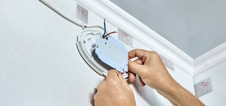 Montaż białego osprzętu (gniazda 230V/400V, włączniki, czujniki, lampy, taśmy LED, świetlenia sterowane standardowo i mobilnie).