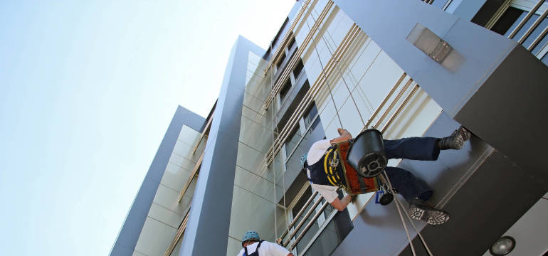 Firmy specjalizujące się w myciu elewacji stosują urządzenia do pracy na wysokości, a także myjki ciśnieniowe. To zadanie wymaga doświadczenia oraz wiedzy na temat doboru optymalnego ciśnienia wody, właściwej dyszy i odpowiedniego detergentu.