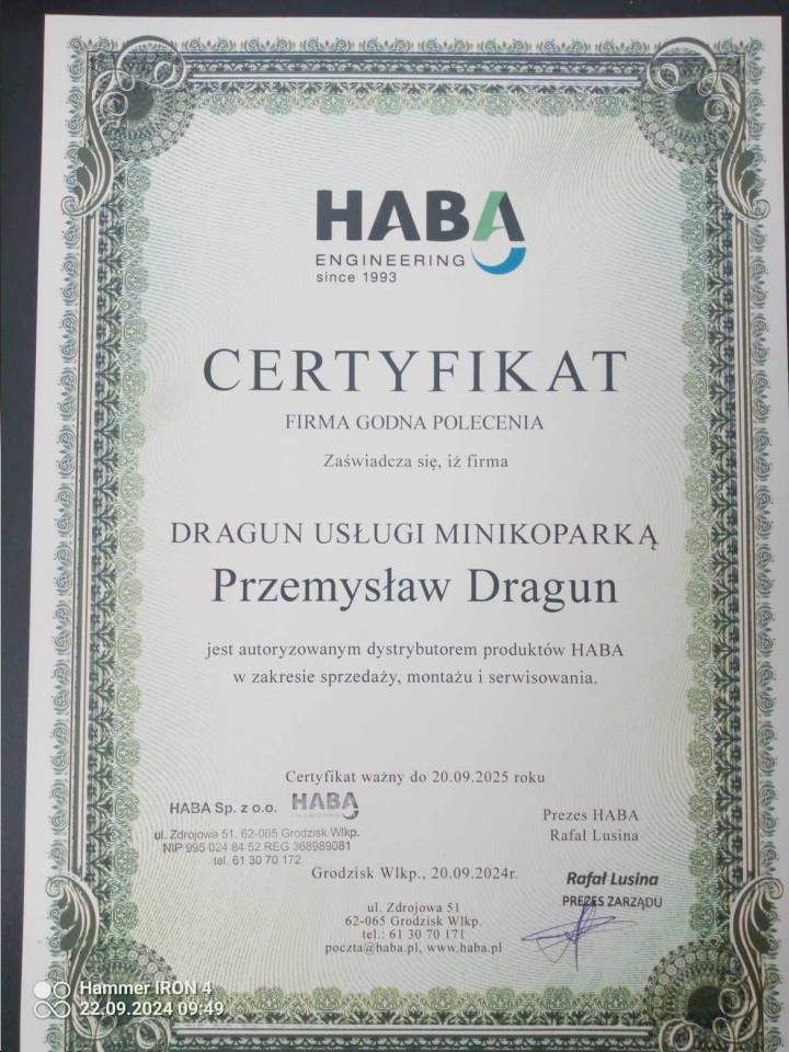 Opis działalności firmy Dragun Usługi minikoparką i przydomowe oczyszczalnie ścieków Przemysław Dragun w Moroczyn
