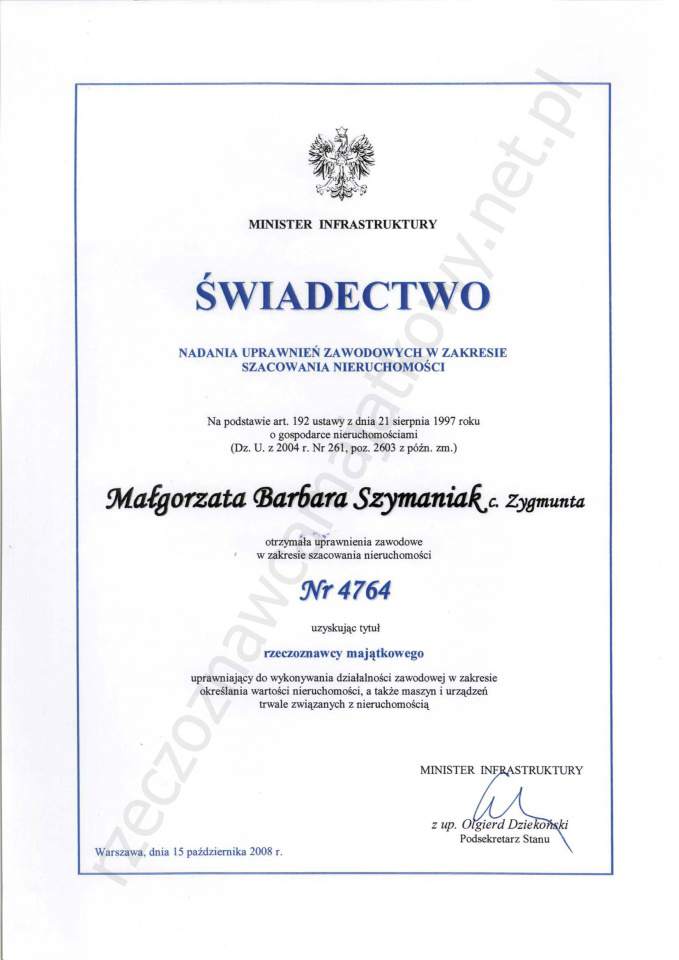 Firma Szymaniak Małgorzata Wycena nieruchomości z lokalizacji: Gdynia świadczy usługi m.in. w wymienionych obszarach: