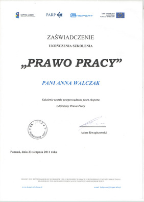 - wydawanie zaświadczeń dla pracowników.