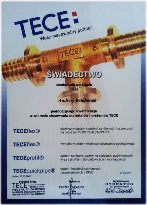 - instalacje gazowe,